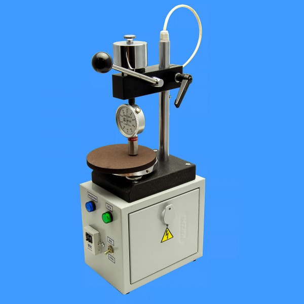 В данной модификации твердомер устанавливается на специальное устройство, позволяющее создавать нормированное прижимное усилие (1,0 ± 0,1) кгс и проводить испытания с установкой необходимого времени выдержки образцов под нагрузкой.